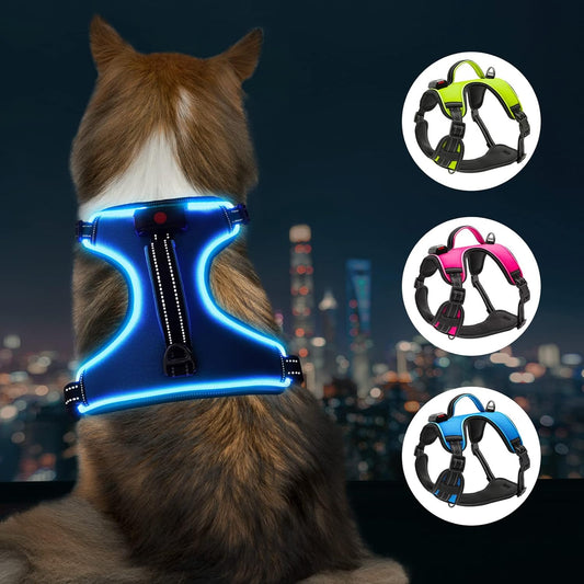 LED Dog Harness- Durable Light up Dog Harness, Reflective Dog Harness Light, Adjustable LED Dog Coat for Small, Medium and Large Dogs (Large, Blue)
